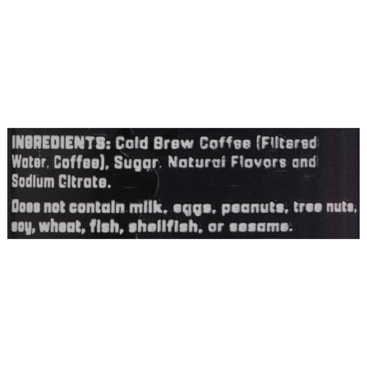 Cold Brew Coffee (Filtered Water, Coffee), Sugar, Natural Flavors and Sodium Citrate.