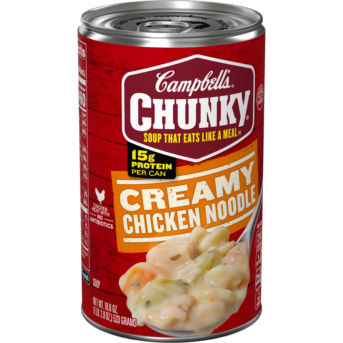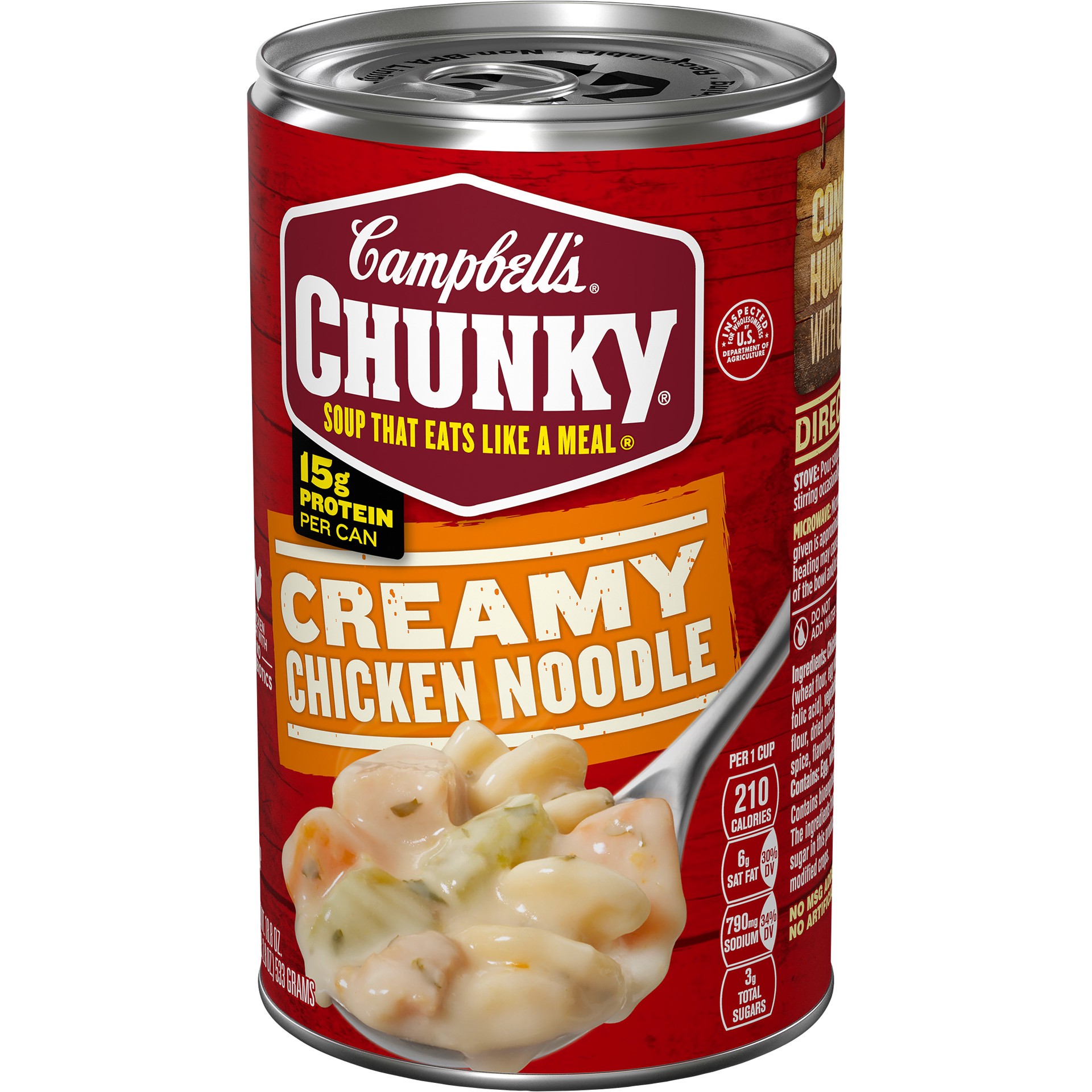 Campbell''s Chunky Creamy Chicken Noodle Soup is the pinnacle of soul-warming comfort food. With never-ending big flavors and bold ingredients, this creamy soup is capable of fueling even the hearties…