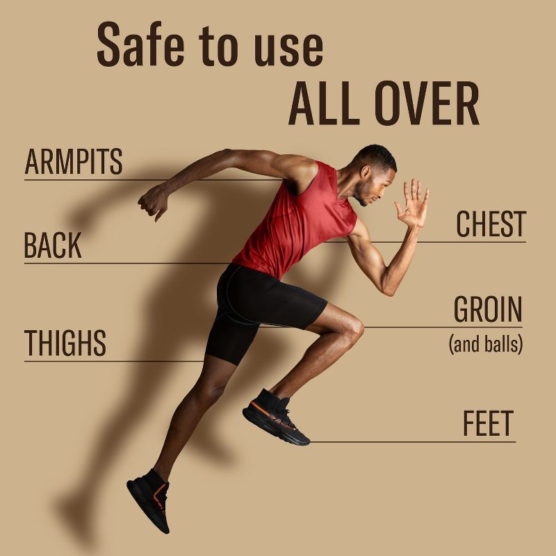 - ABSORBS SWEAT: Not only does it keep you smelling great, it absorbs sweat from pits to toes and down below.