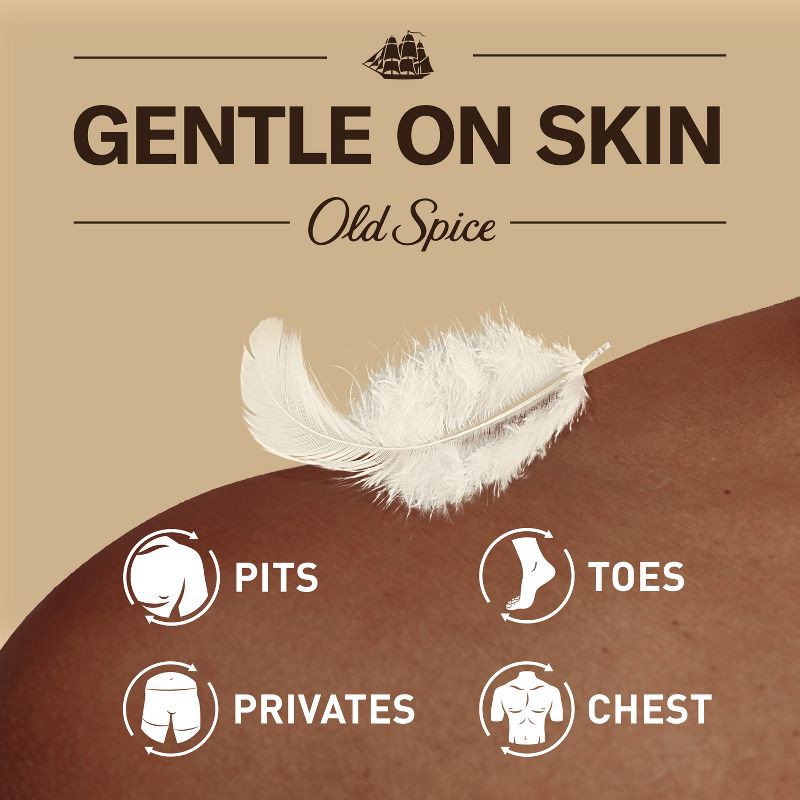 - USE ALL OVER: Old Spice Whole Body Deodorant is a whole body deodorant, gentle enough to use all over. Try Old Spice Whole Body Deodorant on your underarms, chest, legs, stomach, groin, neck, feet, arms, hands, and more.