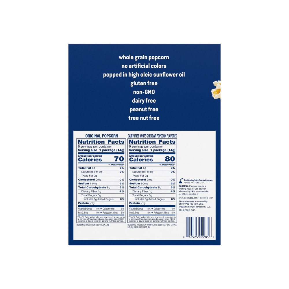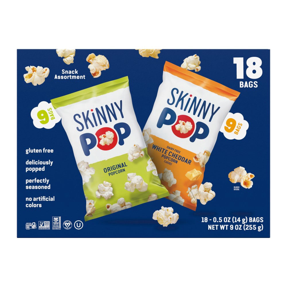 SkinnyPop Popcorn, Original and Dairy Free White Cheddar, 0.5oz Snack Size Bags (18 Count)