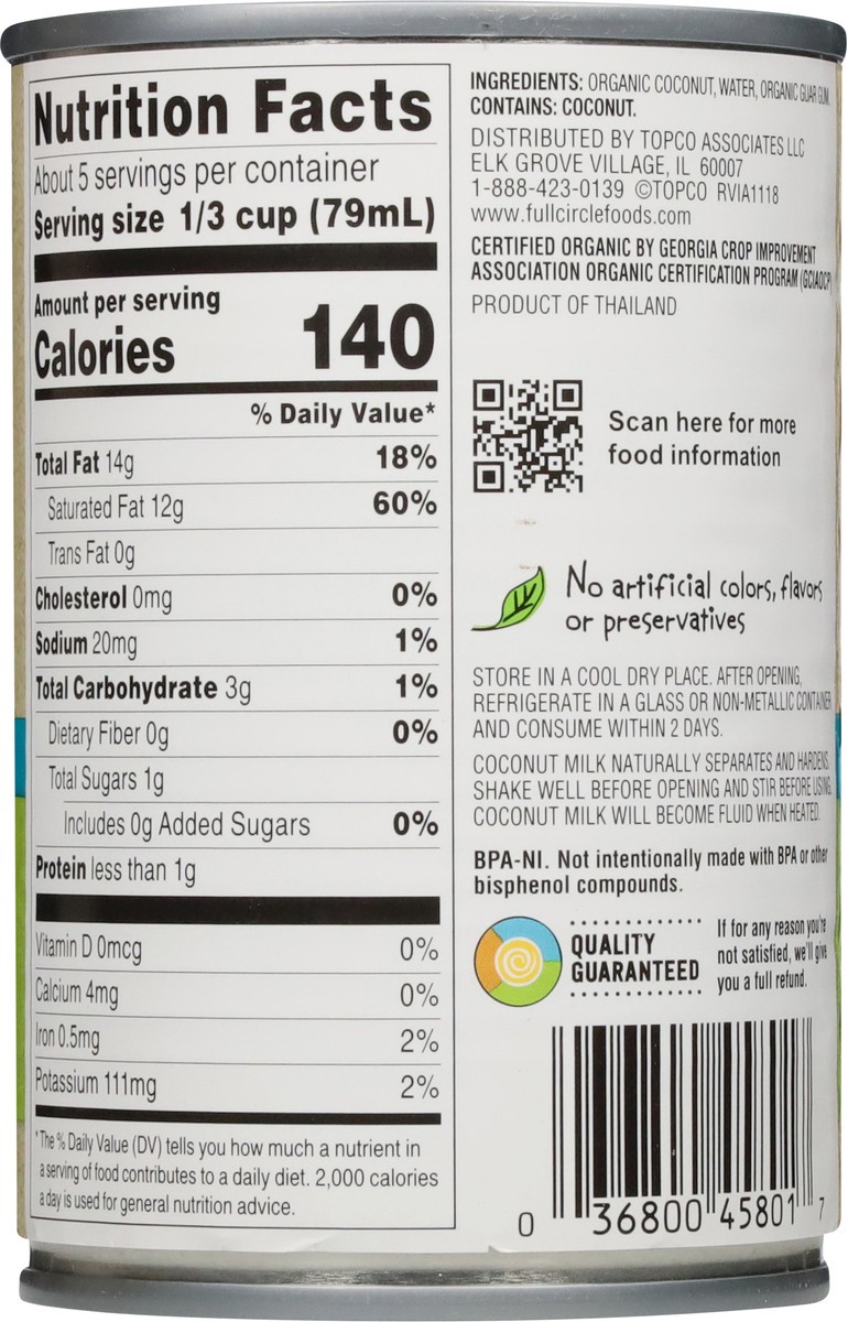 Full Circle Market Organic Unsweetened Coconut Milk 13.5 fl oz