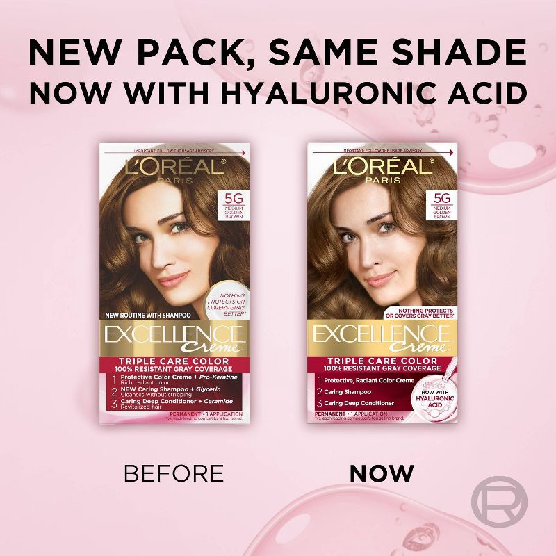Excellence Creme by L'Oreal Paris NEW Triple Care Color routine infused with Hyaluronic Acid protects your hair while you color and covers 100% gray hair coverage, even stubborn ones. The Protective C…