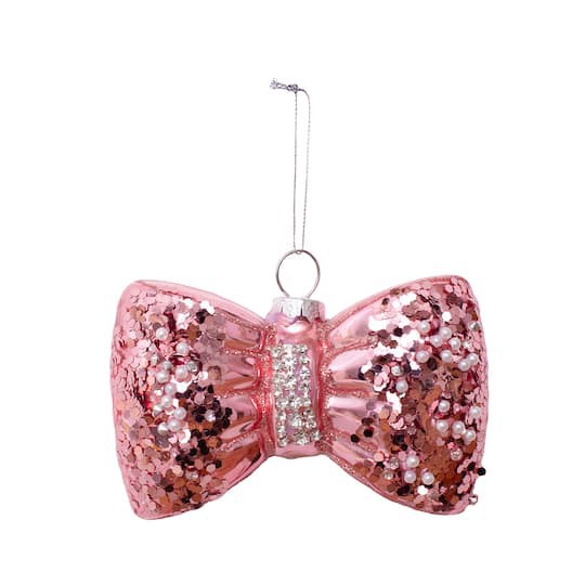 Buy the 3.5" Pink Bow Glass Ornament by Ashland at Michaels. You can hang this pink bow glass ornament with pearl, glitter and rhinestone accents on your Christmas tree! Stylize your tree with color-c…