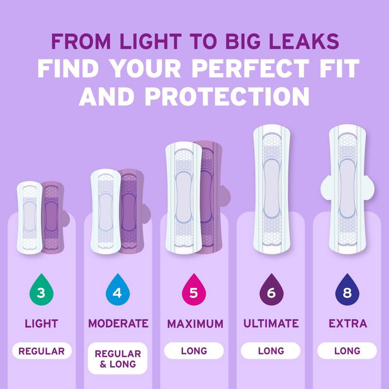 - DESIGNED TO KEEP YOU DRY: Our ultra thin incontinence pads have a Dry-Touch layer that rapidly locks away more* wetness for a clean feel (*vs. leading period pads, 24 ml of fluid)