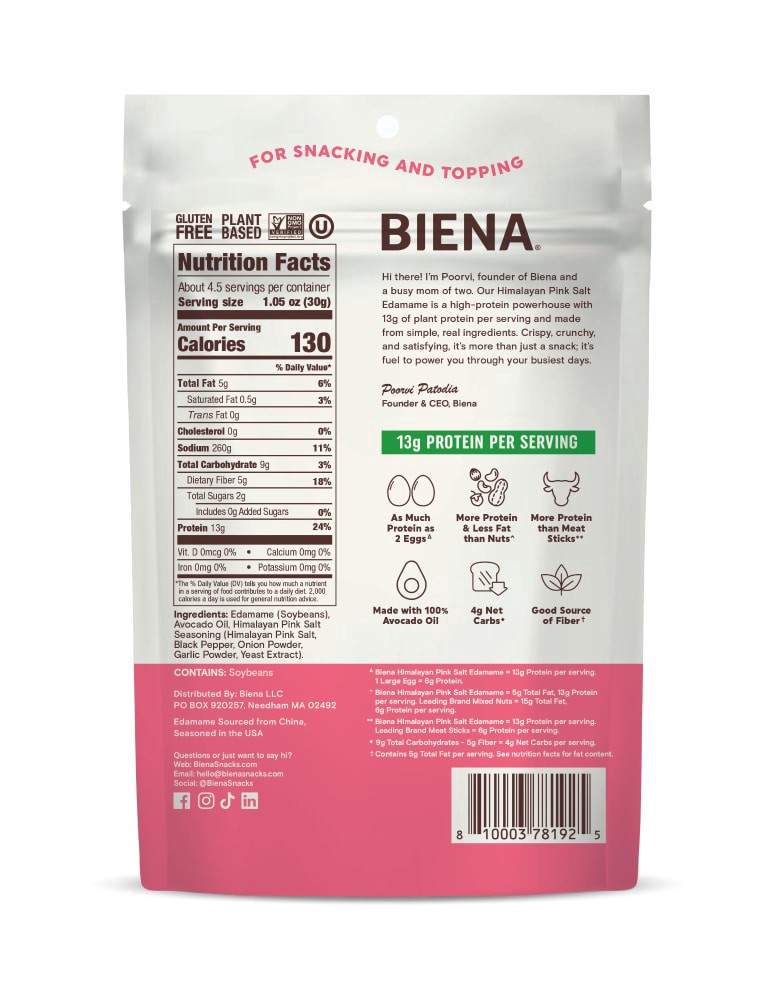 Biena® Snacks Delicious Crispy Roasted Edamame in Himalayan Pink Salt!