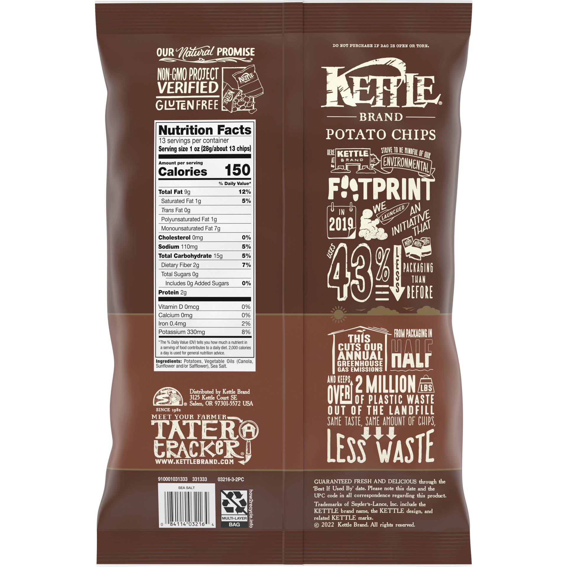 Kettle Brand Sea Salt kettle chips start with a search for undisputed potato excellence. And these babies are something special. Determined not to disrupt the flawless, spudsy goodness of these beauti…