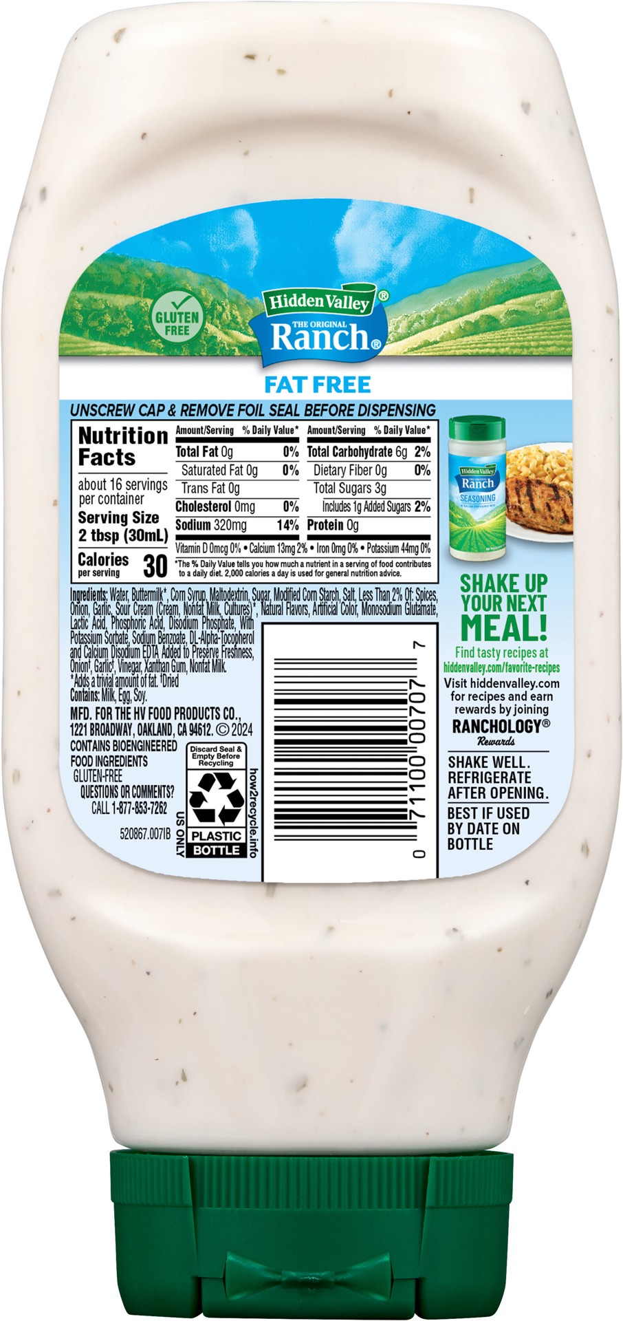 Get all the flavor and none of the fat with Hidden Valley Fat Free Ranch Dressing. This dressing is made with Hidden Valley''s secret blend of herbs and spices, giving you tangy ranch flavor with only…