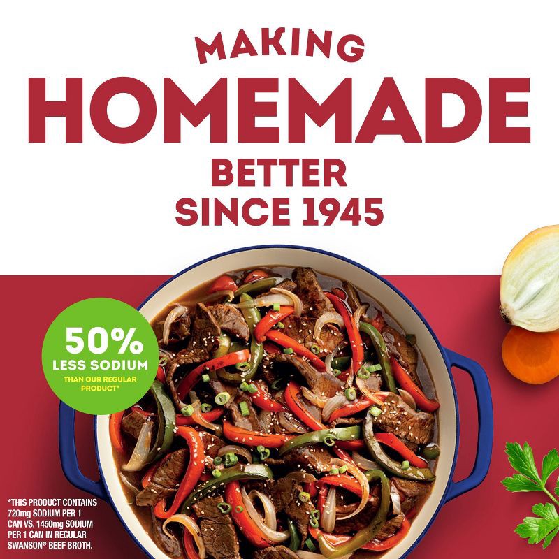 - Swanson® Lower Sodium* Beef Broth is made with quality ingredients for a rich homemade taste