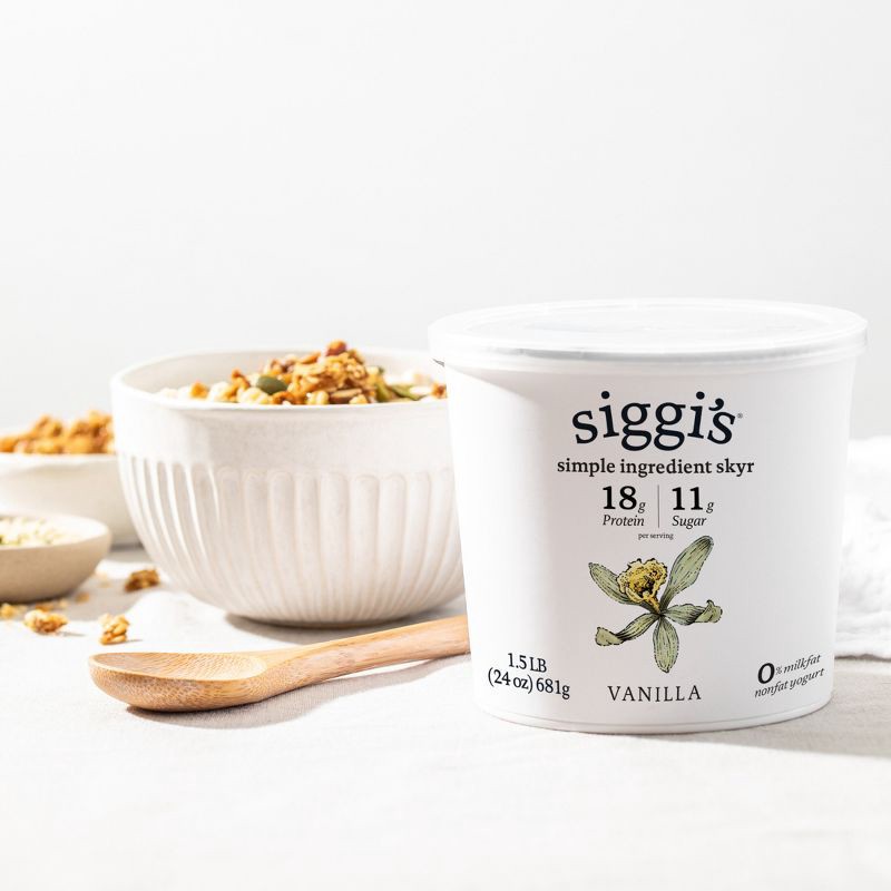 - ICELANDIC YOGURT: siggi's Nonfat Vanilla Yogurt has more protein than sugar – making for a quick breakfast, nutritious snack, or afternoon pick-me-up.