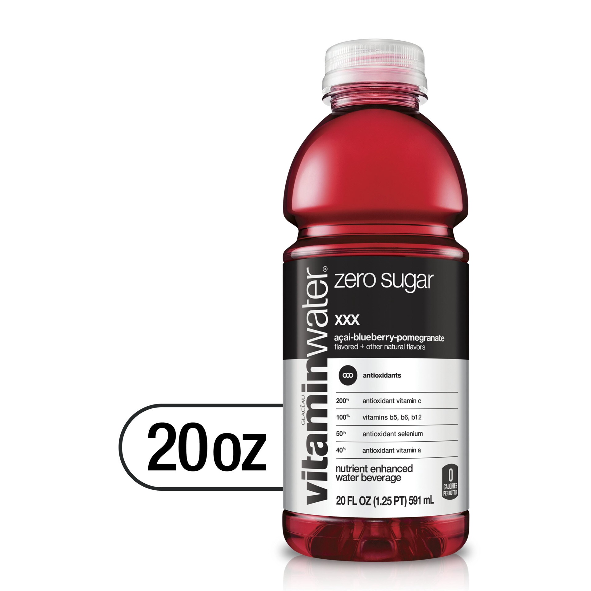 Vitaminwater Zero Sugar Xxx, Electrolyte Enhanced Water W/ Vitamins, Açai-Blueberry-Pomegranate Drink, 20 Fl Oz