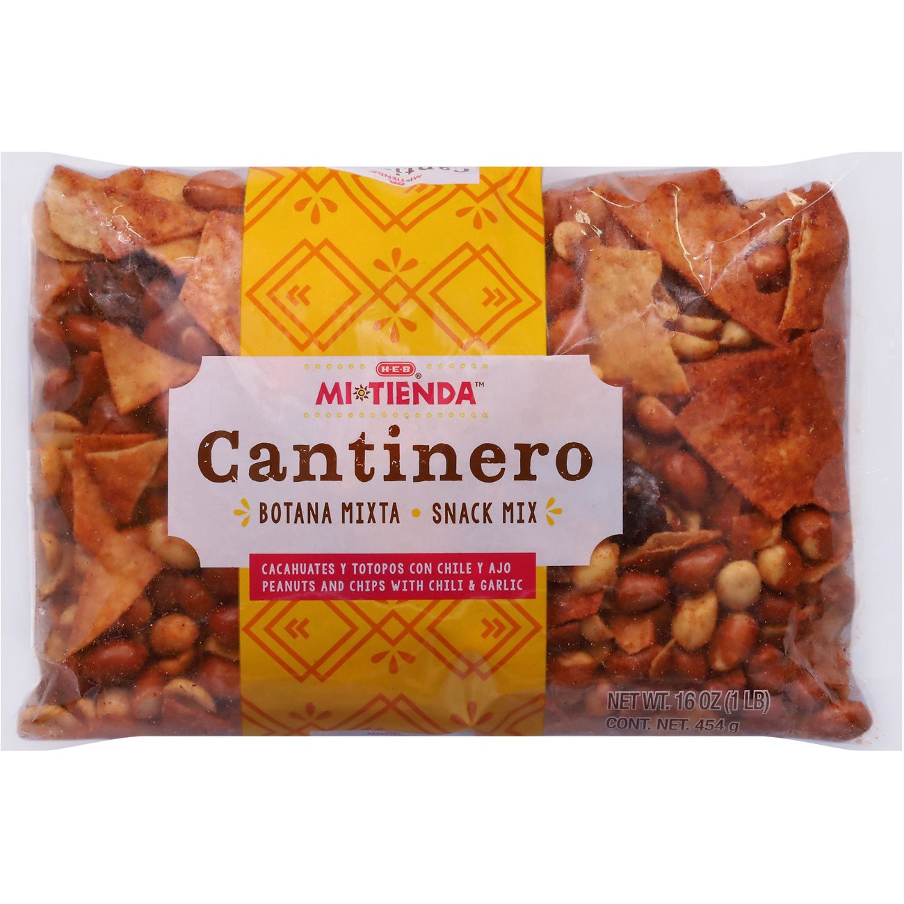 H-E-B Mi Tienda Cantinero Botana Mixta (snack mix) is a munchable treat that's perfect any time of day. Made with peanuts and tortilla chips that are seasoned with chile and garlic, it has a crunchy k…