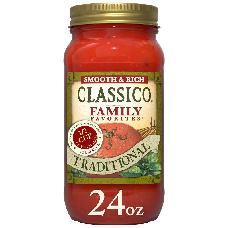 - One 24 oz jar of Classico Family Favorites Traditional Smooth & Rich Pasta Sauce