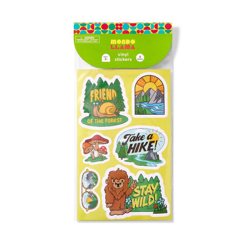 Add a nature-themed splash to your child's decoration supplies with this 6-Pack Nature Vinyl Stickers from Mondo Llama. There are six vinyl stickers on a single sheet, each with different text or desi…