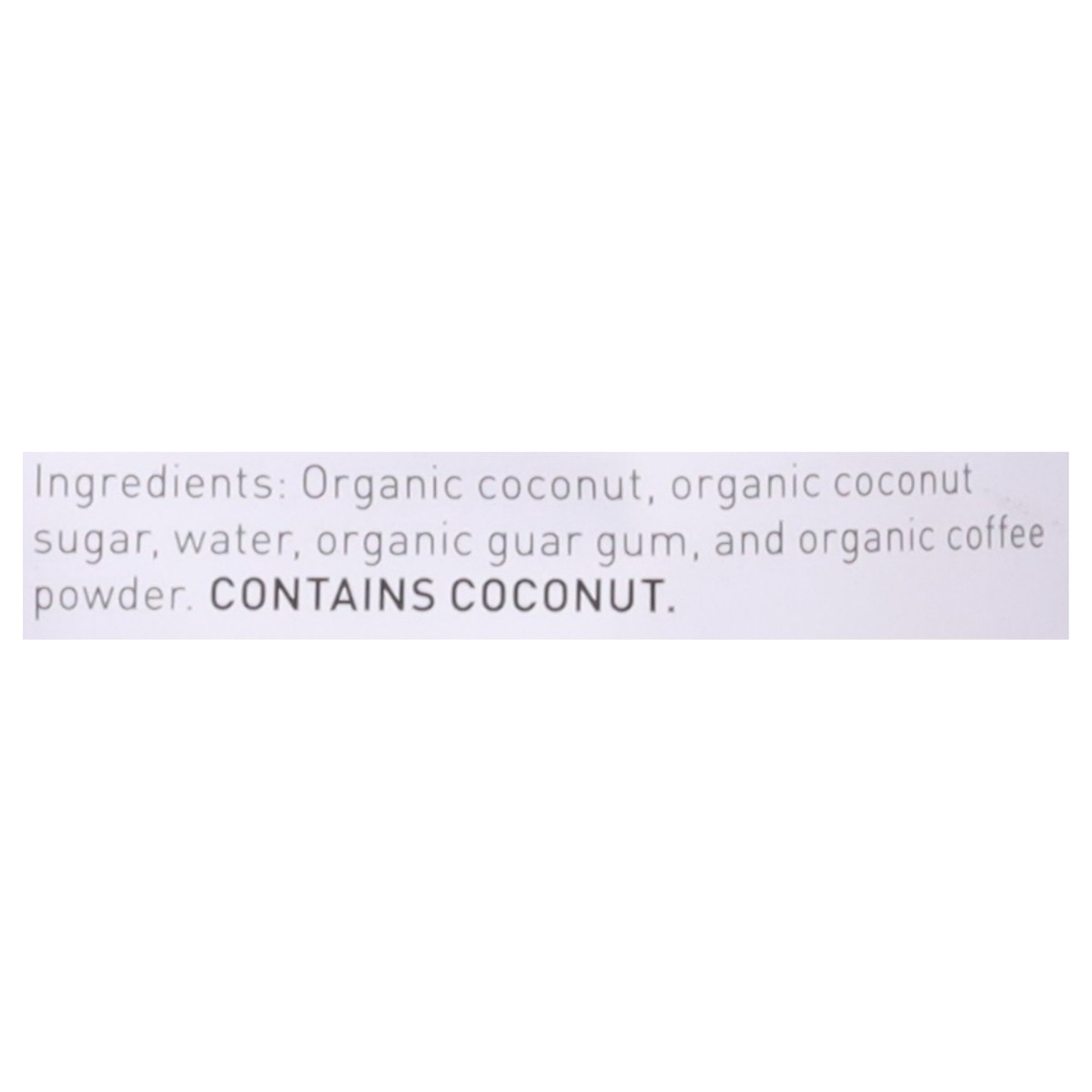 Organic Coconut, Organic Coconut Sugar, Water, Organic Guar Gum, and Organic Coffee Powder.