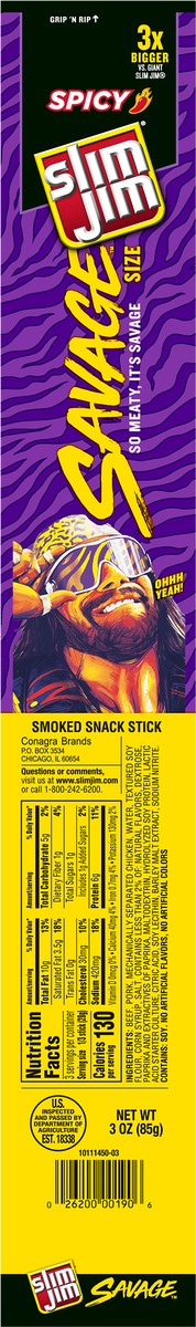 3 x bigger vs. giant Slim Jim. So meaty, it's savage. Ohhh yeah!