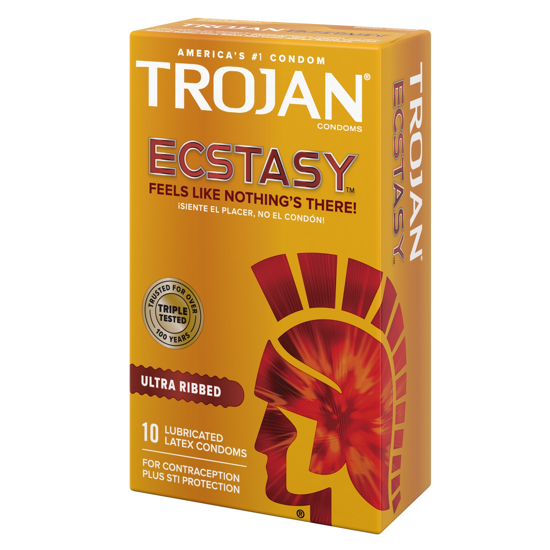 Trojan Ultra Ribbed Ecstasy Lubricated Condoms - 10 Count