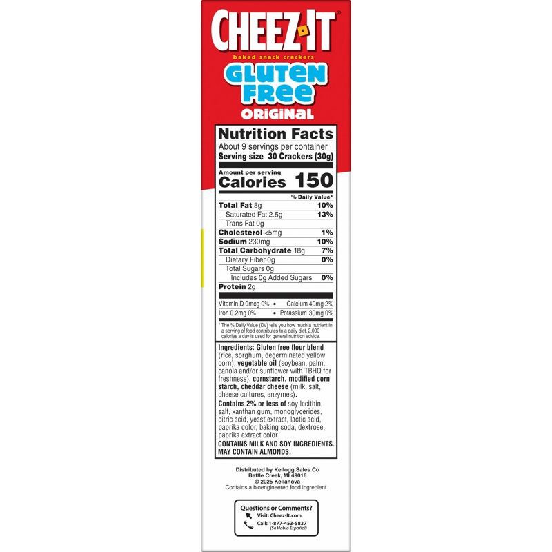 Gluten Free Flour Blend (Rice, Sorghum, Degerminated Yellow Corn), Vegetable Oil (Soybean, Palm, Canola and/or Sunflower with TBHQ for Freshness), Cornstarch, Modified Corn Starch, Cheddar Cheese (Mil…