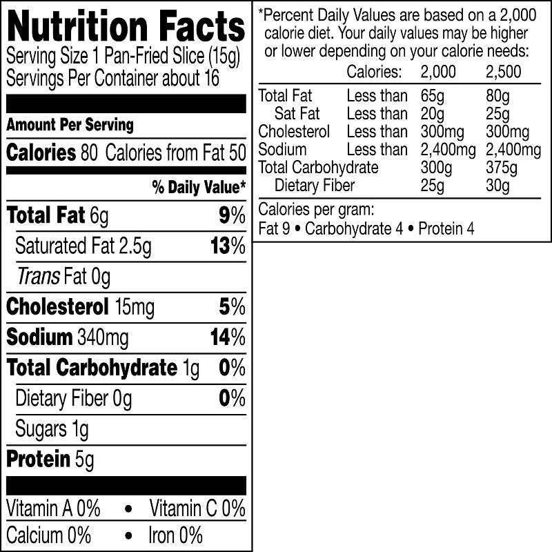 - Each serving has 80 calories per serving and is gluten free, so make bacon the star ingredient in all your meals!