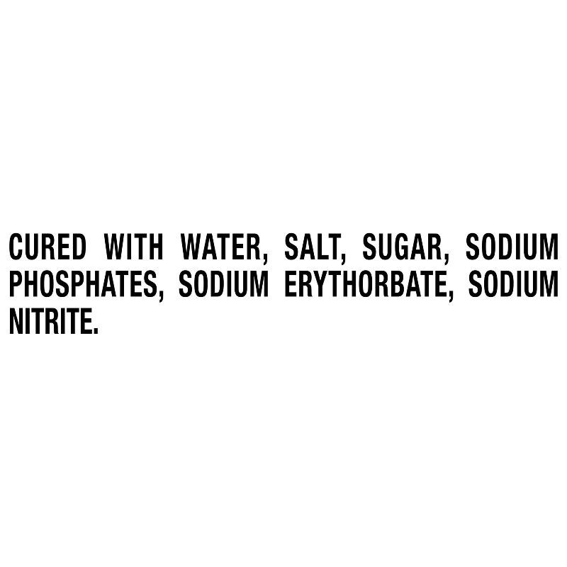 Cured with Water, Salt, Sugar, Sodium Phosphates, Sodium Erythorbate, Sodium Nitrite.