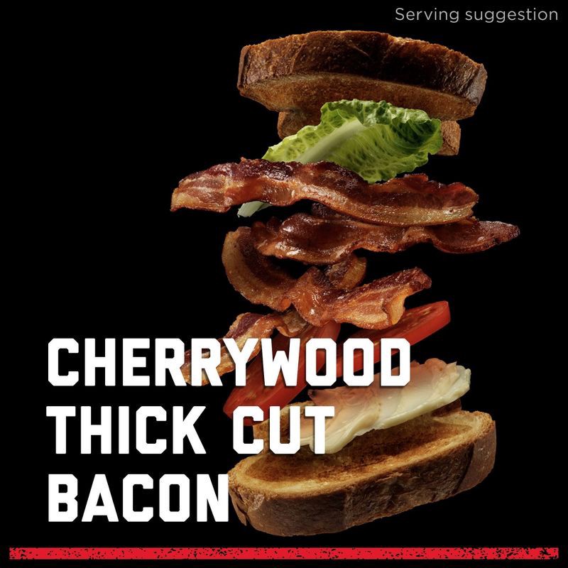 Live for it! HORMEL BLACK LABEL Cherrywood gives the bacon a mild and fruity smoke flavor. We use quality cuts of meat for thick cut slices that don't break apart and are slowly smoked over natural wo…