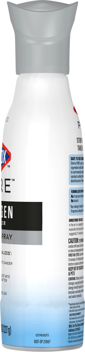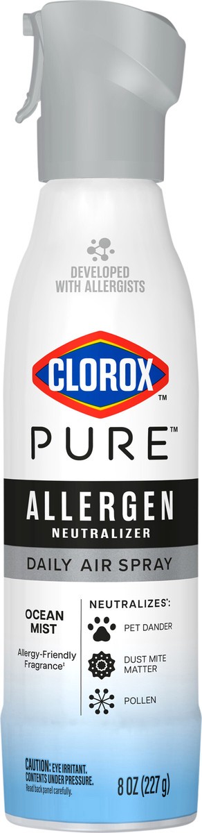Clorox PURE Allergen Neutralizer Daily Air Spray neutralizes pet dander, dust mite matter and pollen while freshening with allergen free fragrance.