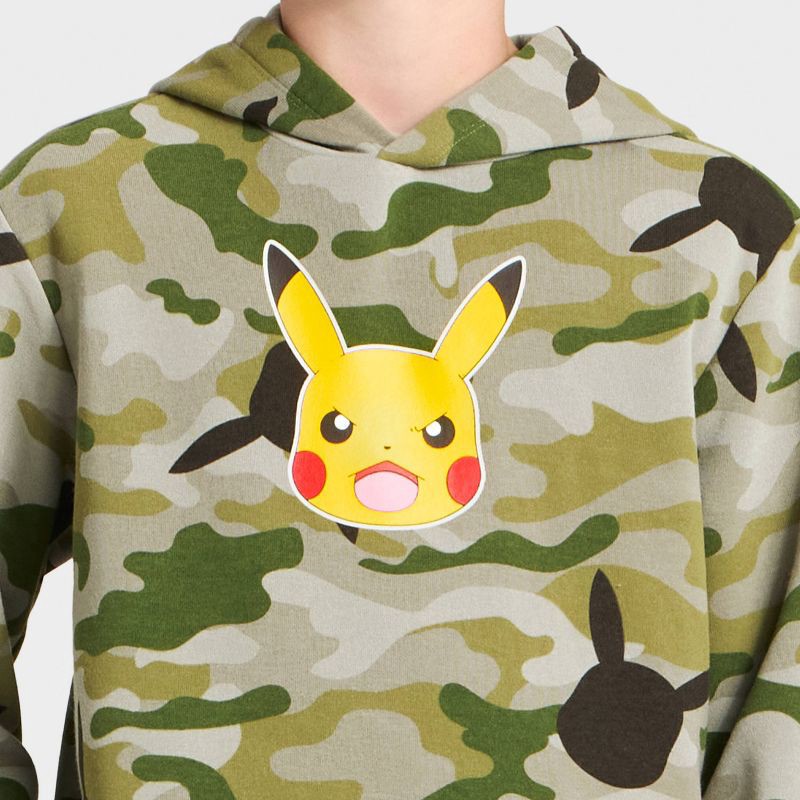 Get ready to walk out in cool style with the Boys' Pokemon Pikachu Camo Fleece Hooded Sweatshirt in Green. Featuring everyone's favorite character, this midweight fleece hoodie is as cozy as it is bol…