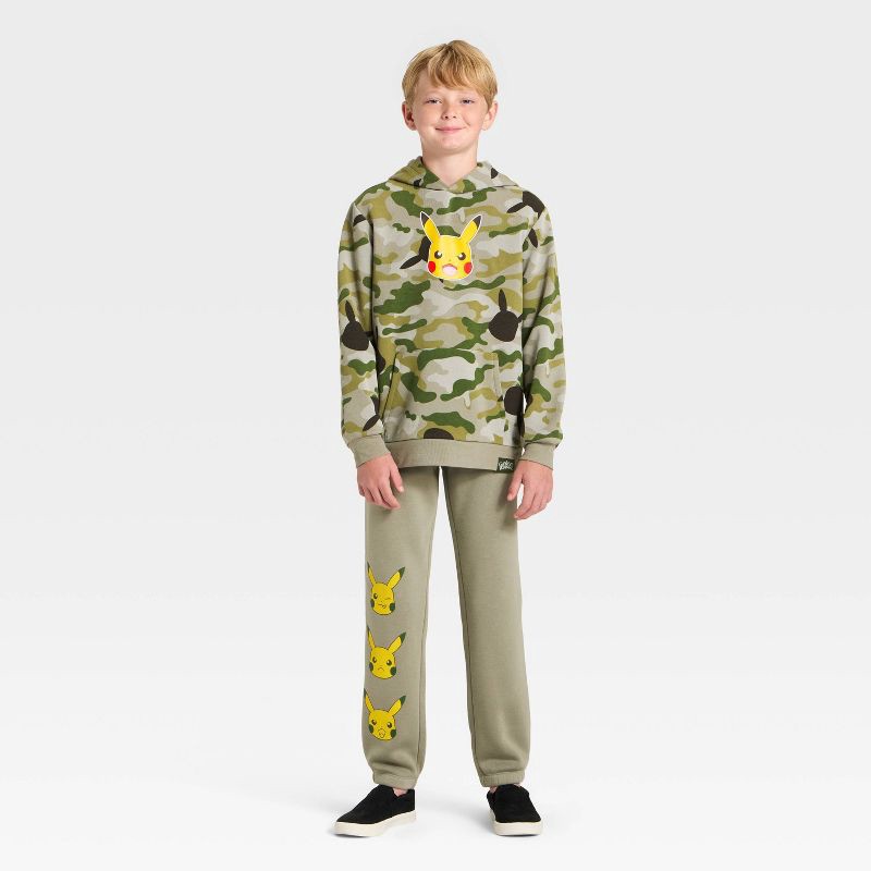Boys' Pokemon Pikachu Camo Fleece Hooded Sweatshirt - Green S