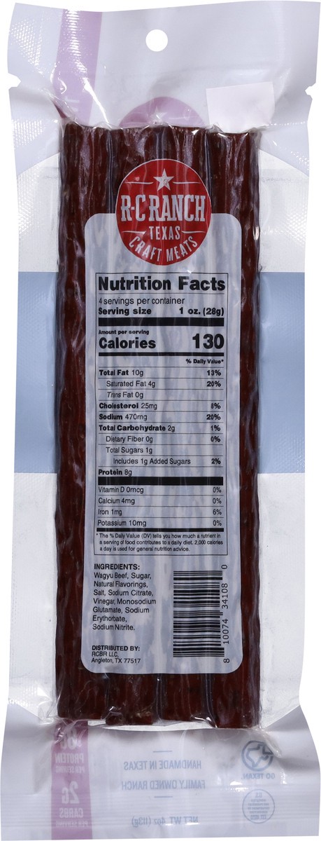 R-C Ranch Texas Craft Meats Premium Wagyu Beef Sticks 4 oz