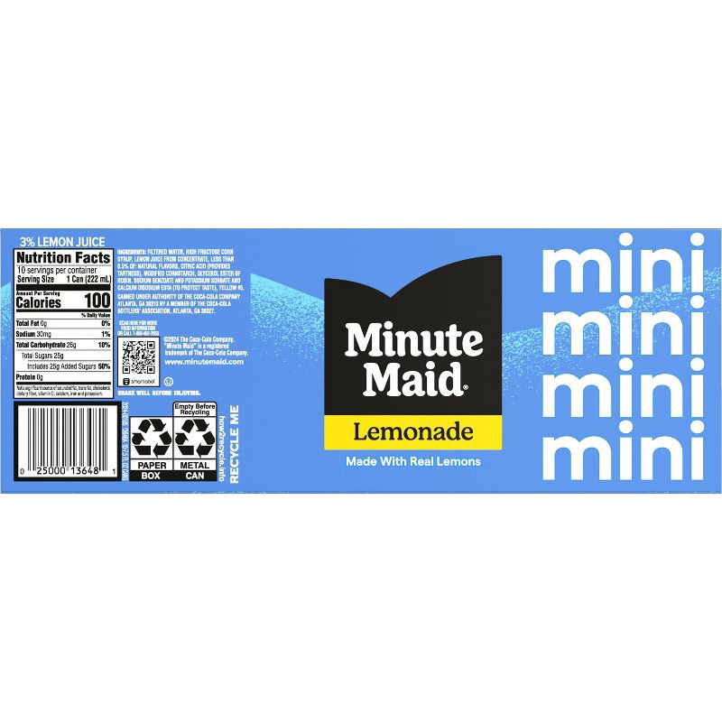 - 10 pack, 7.5 fl oz mini cans of Minute Maid Lemonade