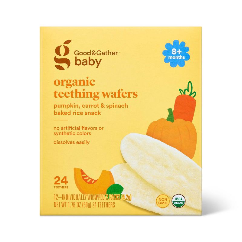 Organic Pumpkin Carrot and Spinach Teething Wafers Baby Snacks - 1.76oz/12pk - Good & Gather™