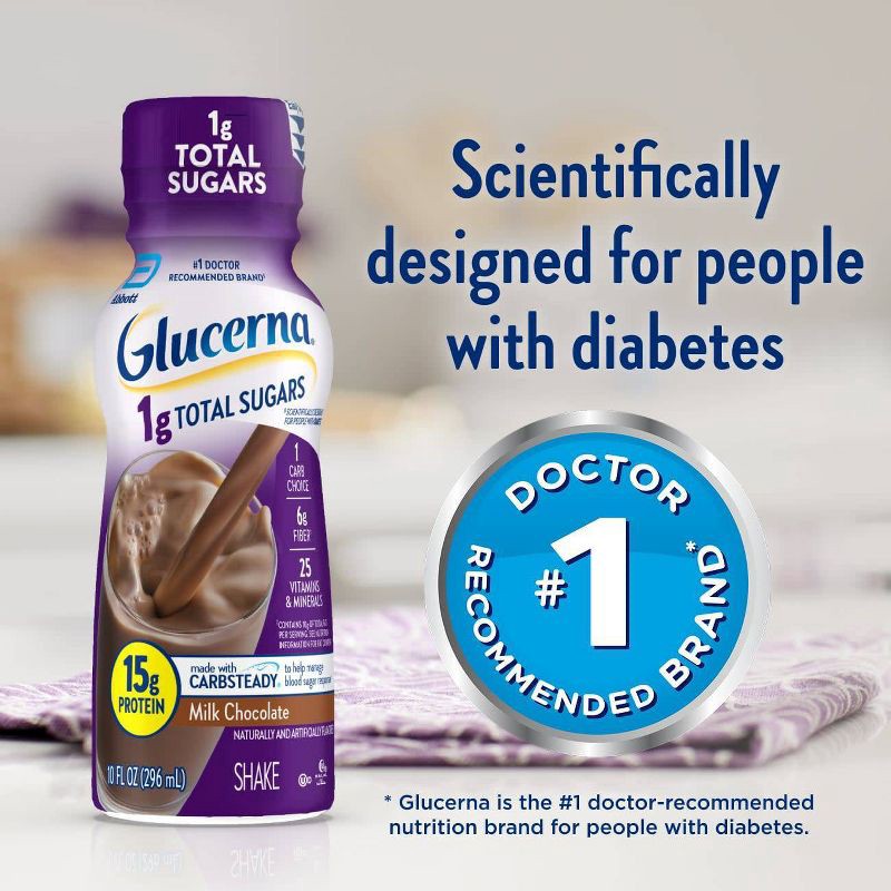 - DESIGNED AS A DIABETIC SNACK REPLACEMENT SHAKE: A Chocolate Glucerna 1g Total Sugars shake is a delicious replacement for a poor snack choice