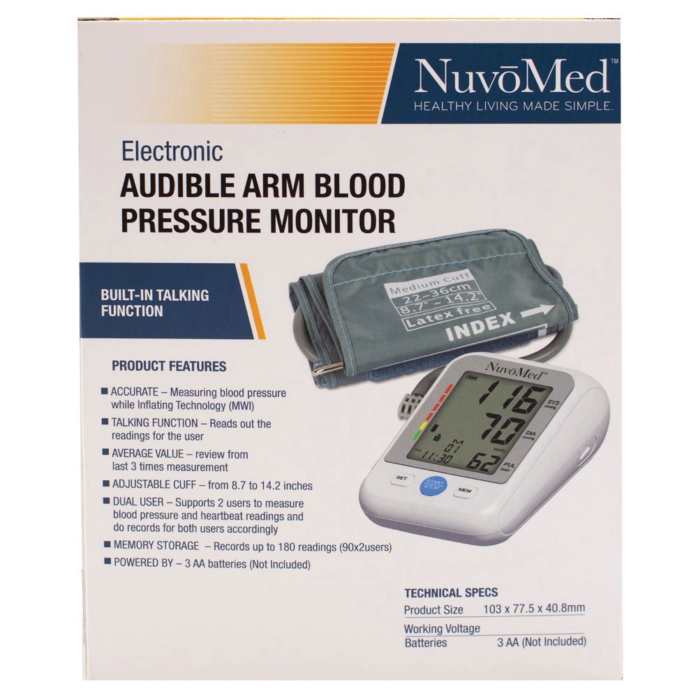 Track your blood pressure with ease using the NuvoMed™ Talking Series Blood Pressure Monitor! This accurate blood pressure monitor boasts a talking function, average value, and adjustable cuff. With m…
