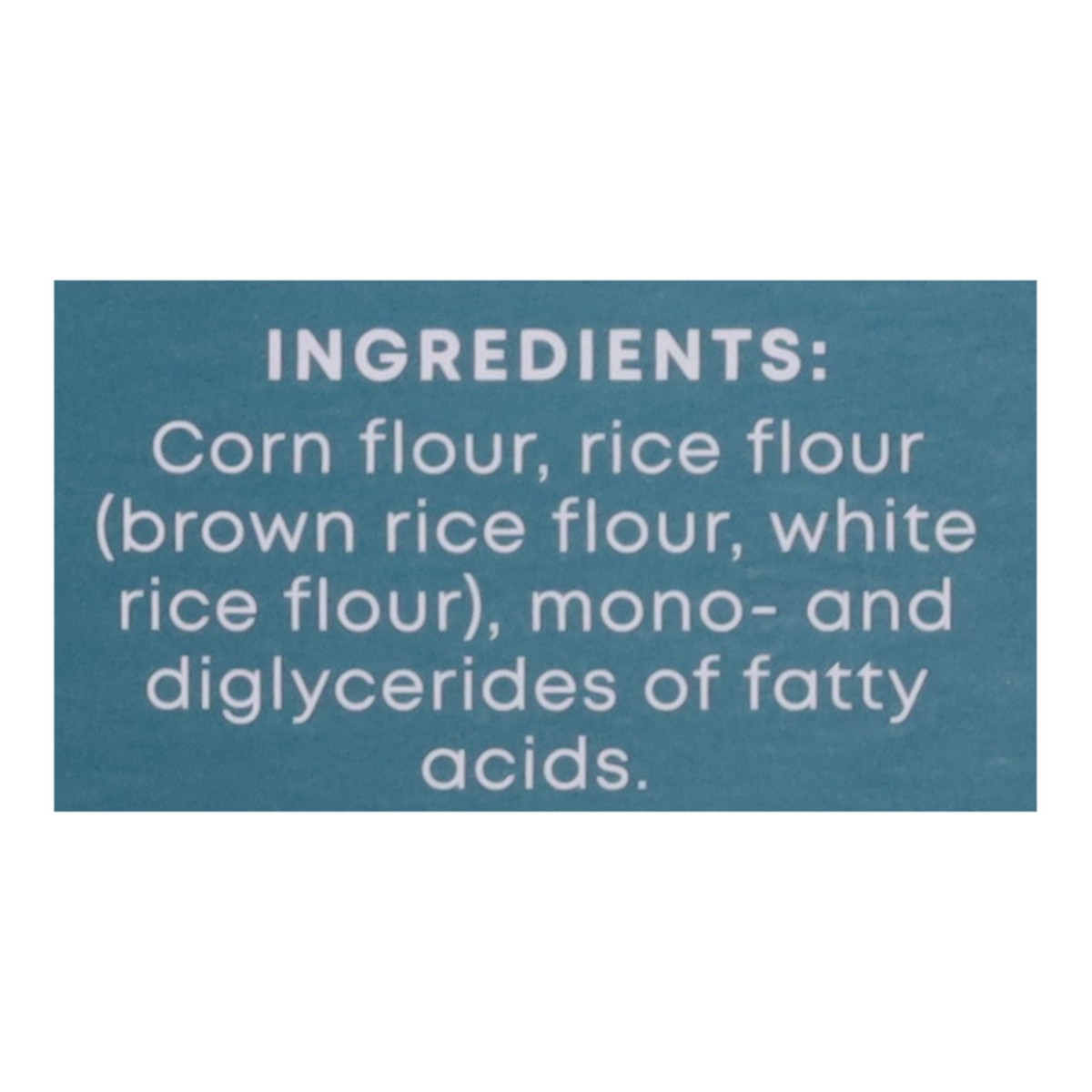 Corn Flour, Rice Flour (Brown Rice Flour, White Rice Flour), Mono-and Diglycerides of Fatty Acids.