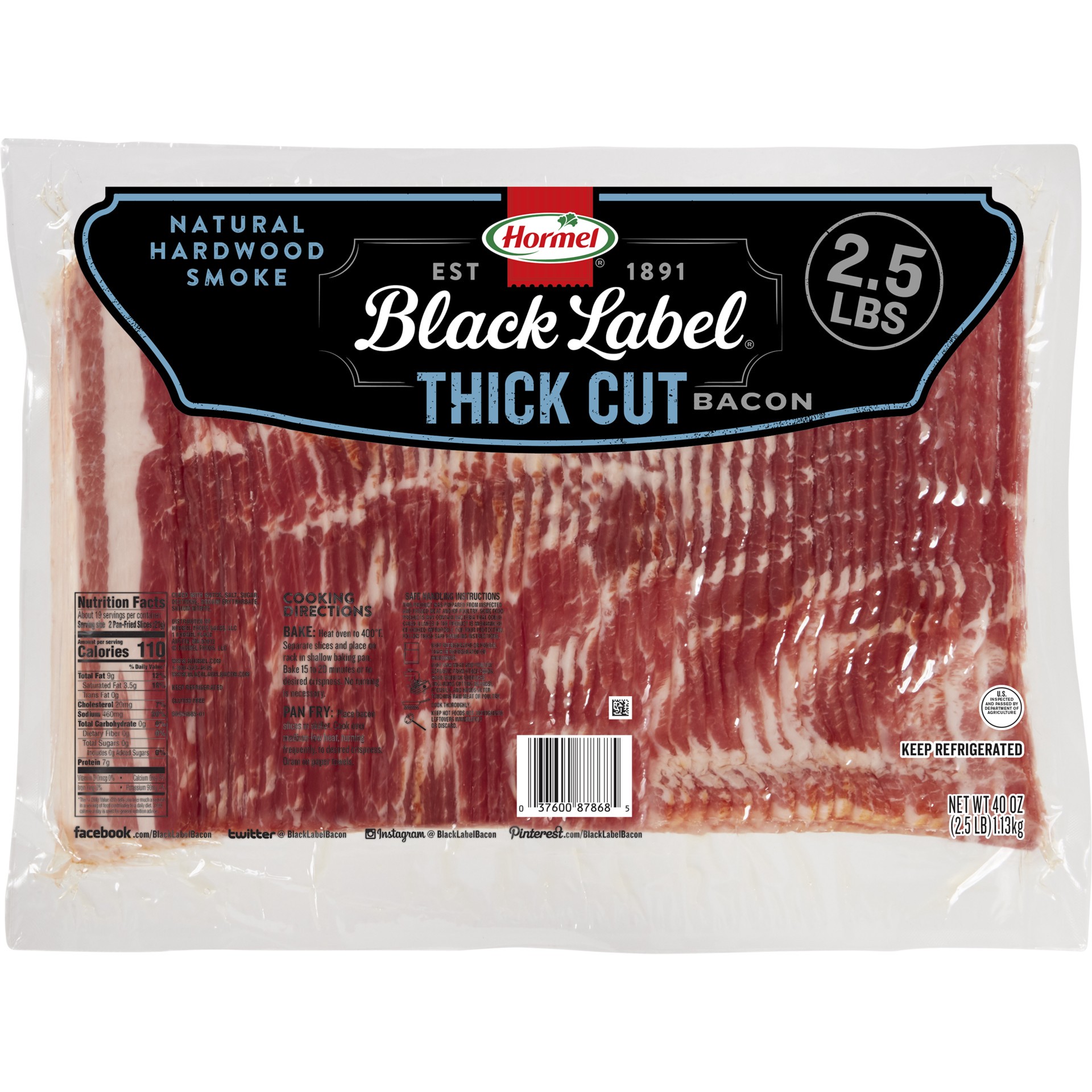 This HORMEL BLACK LABEL bacon has the same great taste as the original cut, but it's cut thicker — a LOT thicker — which means it's perfect for turning into bacon bits, chopping up for a salad, or dra…