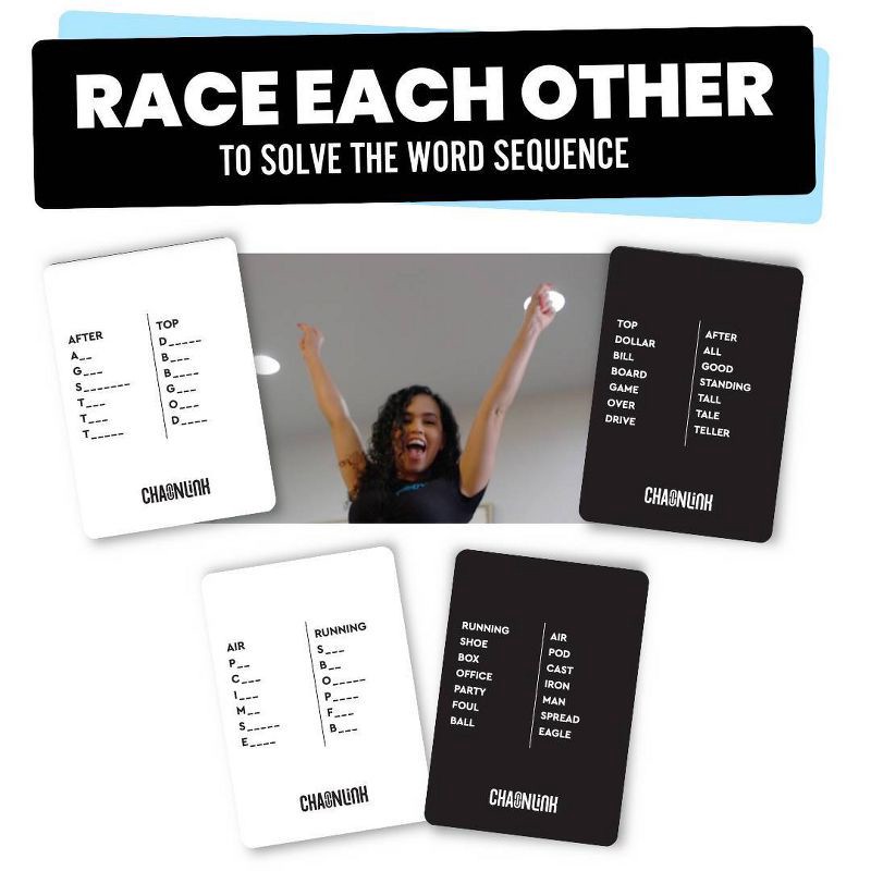Chain Link is the fast-paced wordplay party game that's part trivia, part smackdown, and all chaos. Each round, two players face off to complete a chain of connected words—think “Coffee → Date → Night…