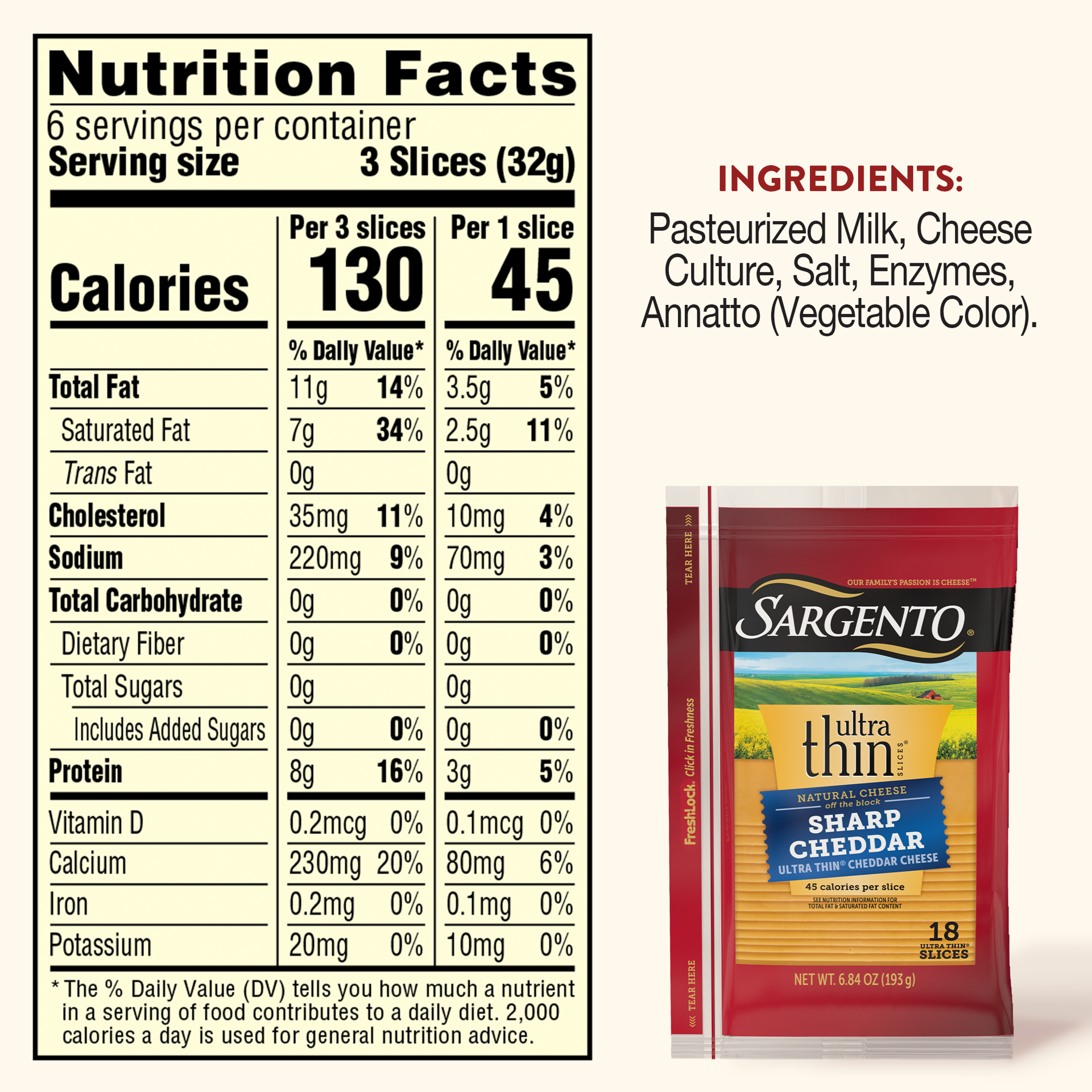 Sargento Sharp Natural Cheddar Cheese Ultra Thin Slices 18 Count - 6.84 Oz