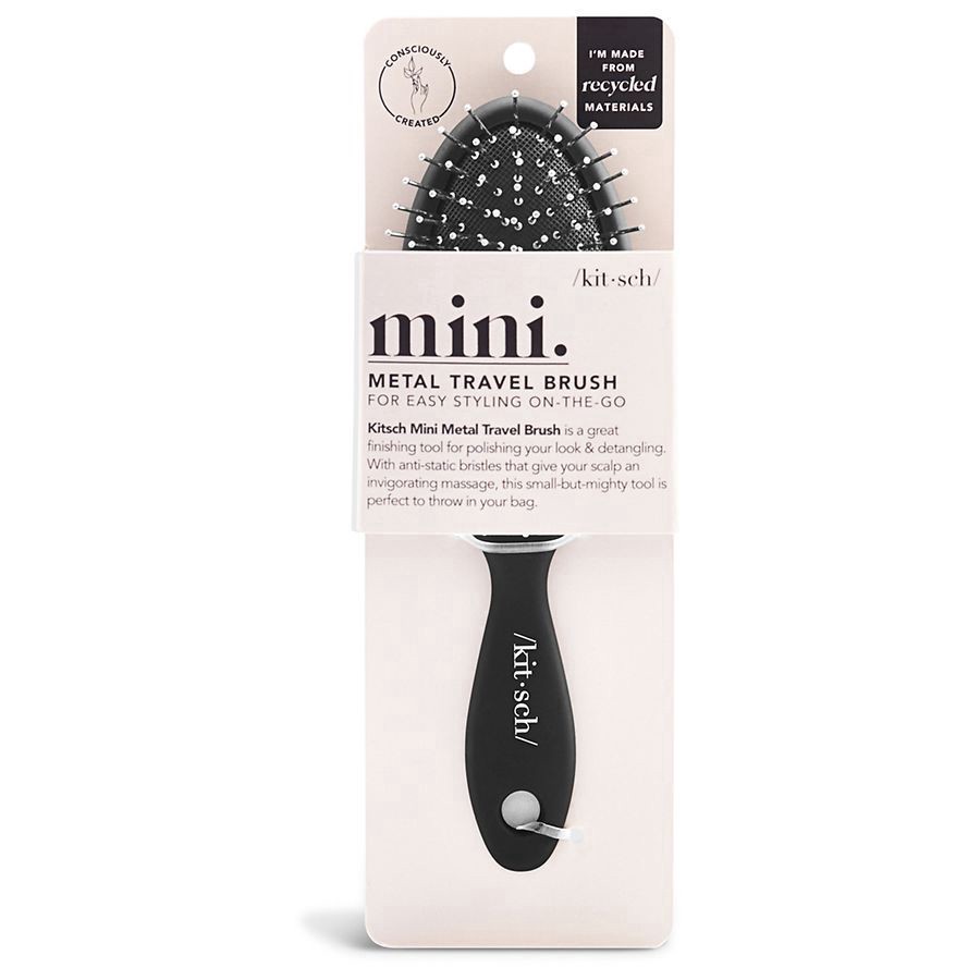 -The Kitsch Mini Metal Travel Brush is the perfect hair tool to throw in your purse or pack in your suitcase for elevated hair care on-the-go. -The dual bristle combo of soft tampico and flexible nylo…