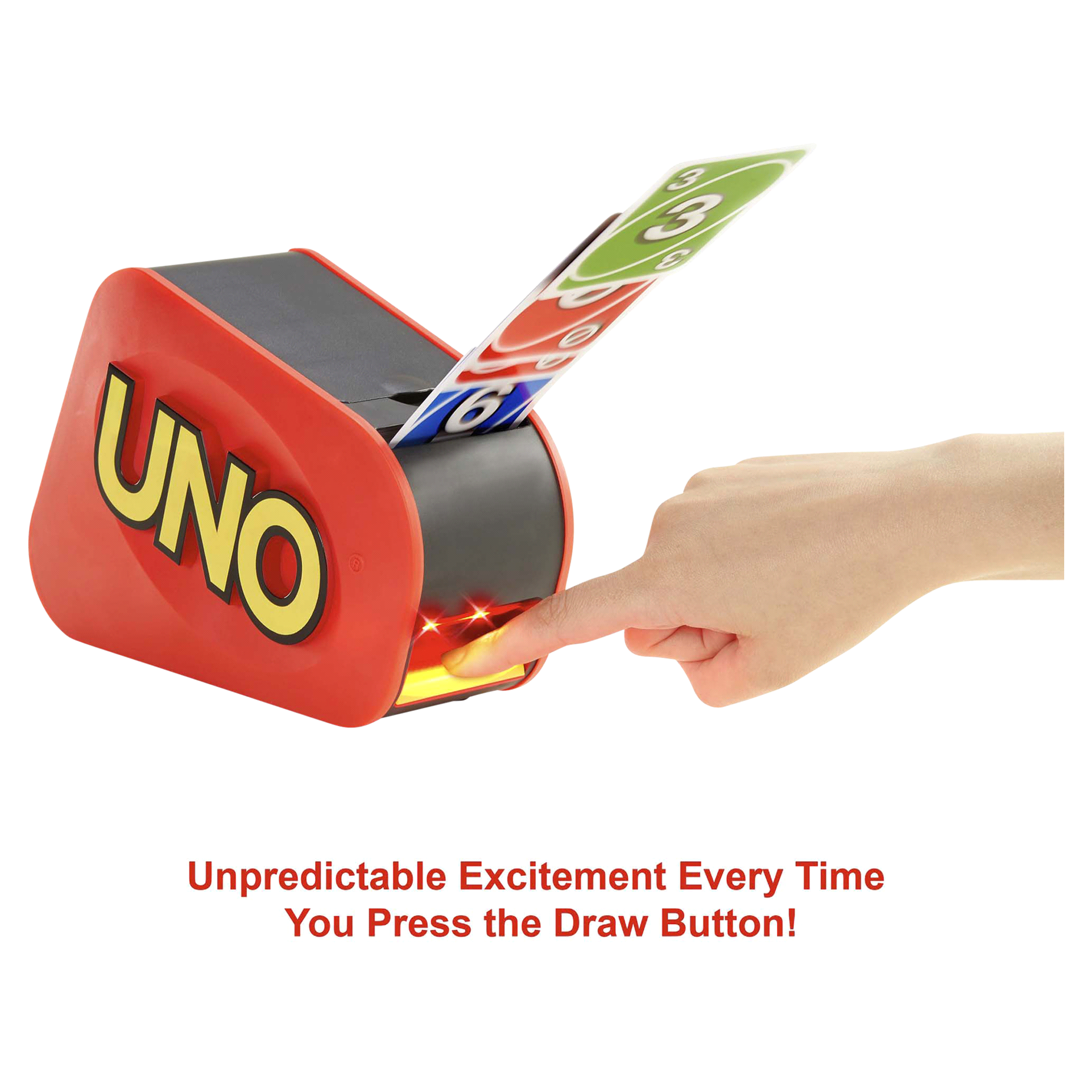This edition of UNO Attack features an updated card-launcher with a sleek design that shoots cards higher! Improved sound effects and lights flash faster each time the button is pushed, adding to the …