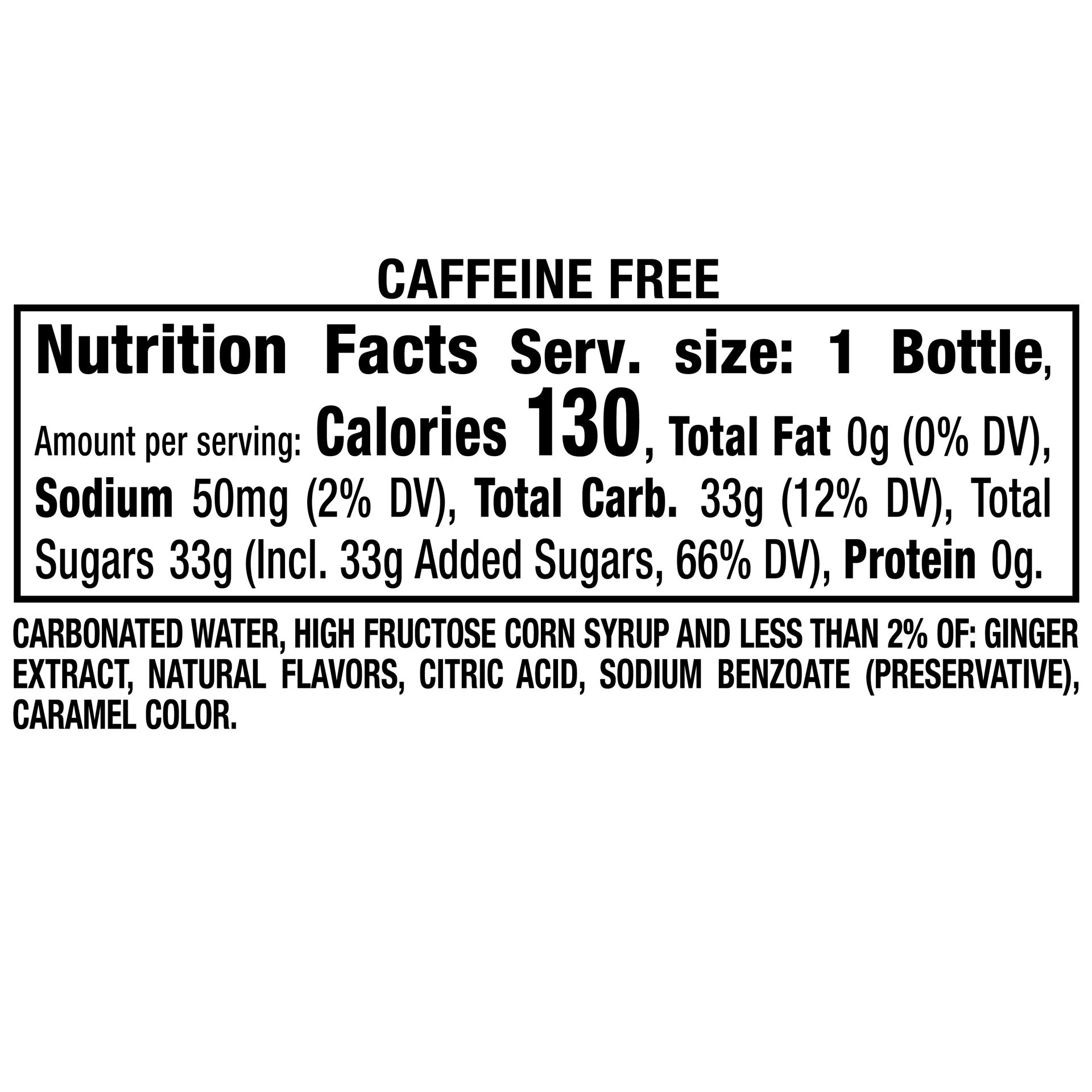 Carbonated Water, High Fructose Corn Syrup and Less than 2% of: Ginger Extract, Natural Flavors, Citric Acid, Sodium Benzoate (Preservative), Caramel Color.
