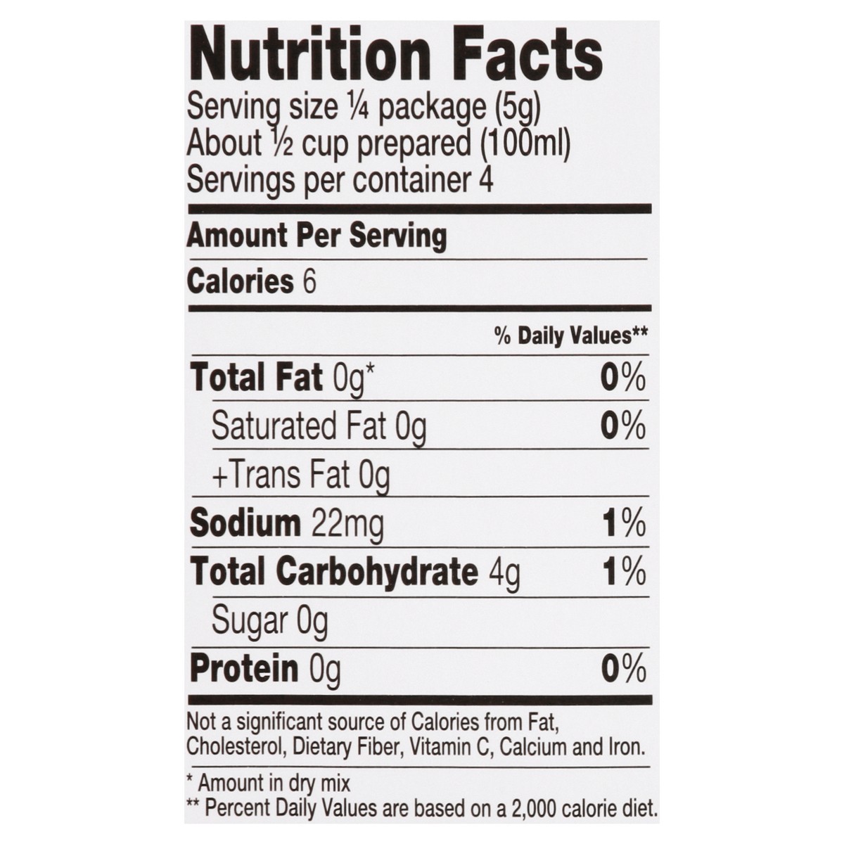 Natural flavors. 6 calories per serving. Zero net carbs. Sugar free. Vegan friendly. Keto friendly. Lactose free. Nut free. Gluten free. Allergen Free: Free from the 8 common allergens: peanut, tree n…