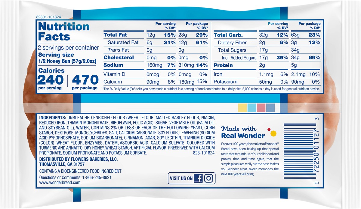 Wonder Iced Honey Bun\, Individually Wrapped Pastry Snack\, 4 oz
