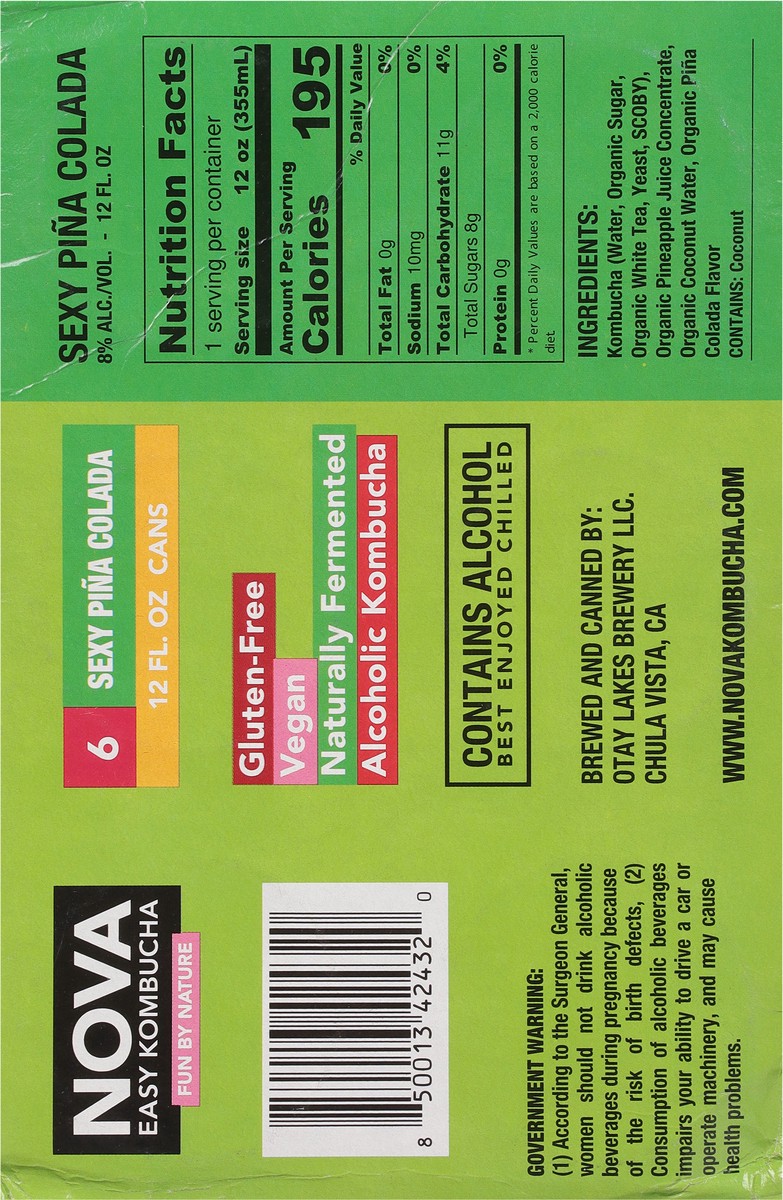 Nova Sexy Pina Colada Kombucha 6 - 12 fl oz Cans