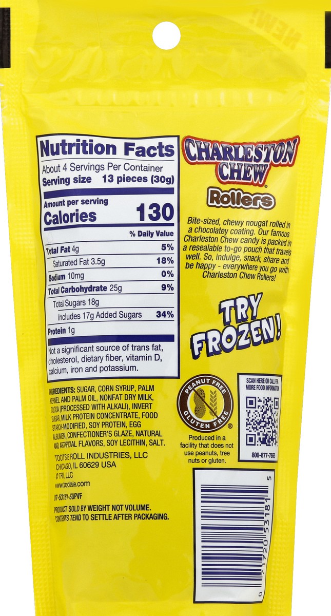 Your favorite chewy nougat rolled in a chocolatey coating. Artificially flavored. No artificial colors. Snack-to-go. Bite sized, chewy nougat rolled in a chocolatey coating. Our famous Charleston Chew…
