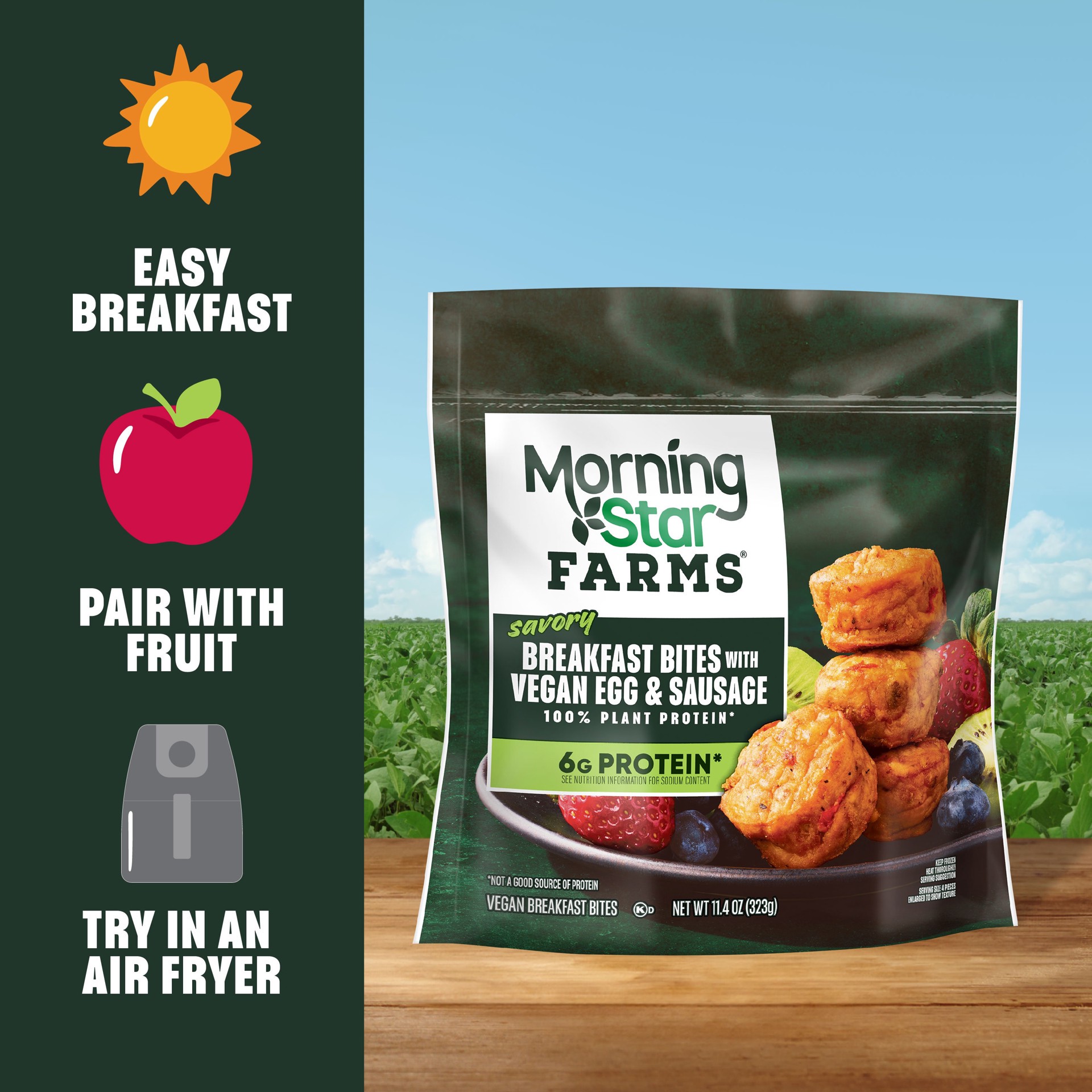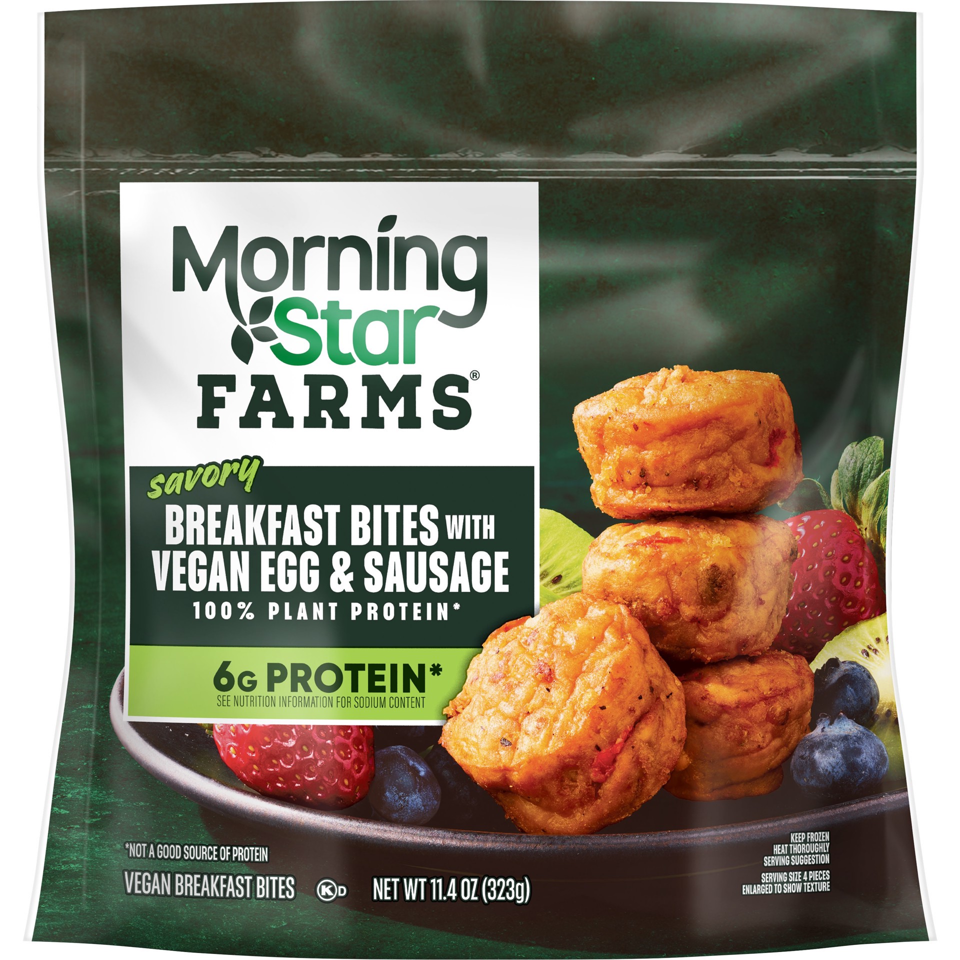 Grab an eggscellent bite to start your day with MorningStar Farms Breakfast Bites with Vegan Egg and Sausage. Each bite is filled with cheddar-style cheeze, onion, red bell peppers, vegan eggs, and me…