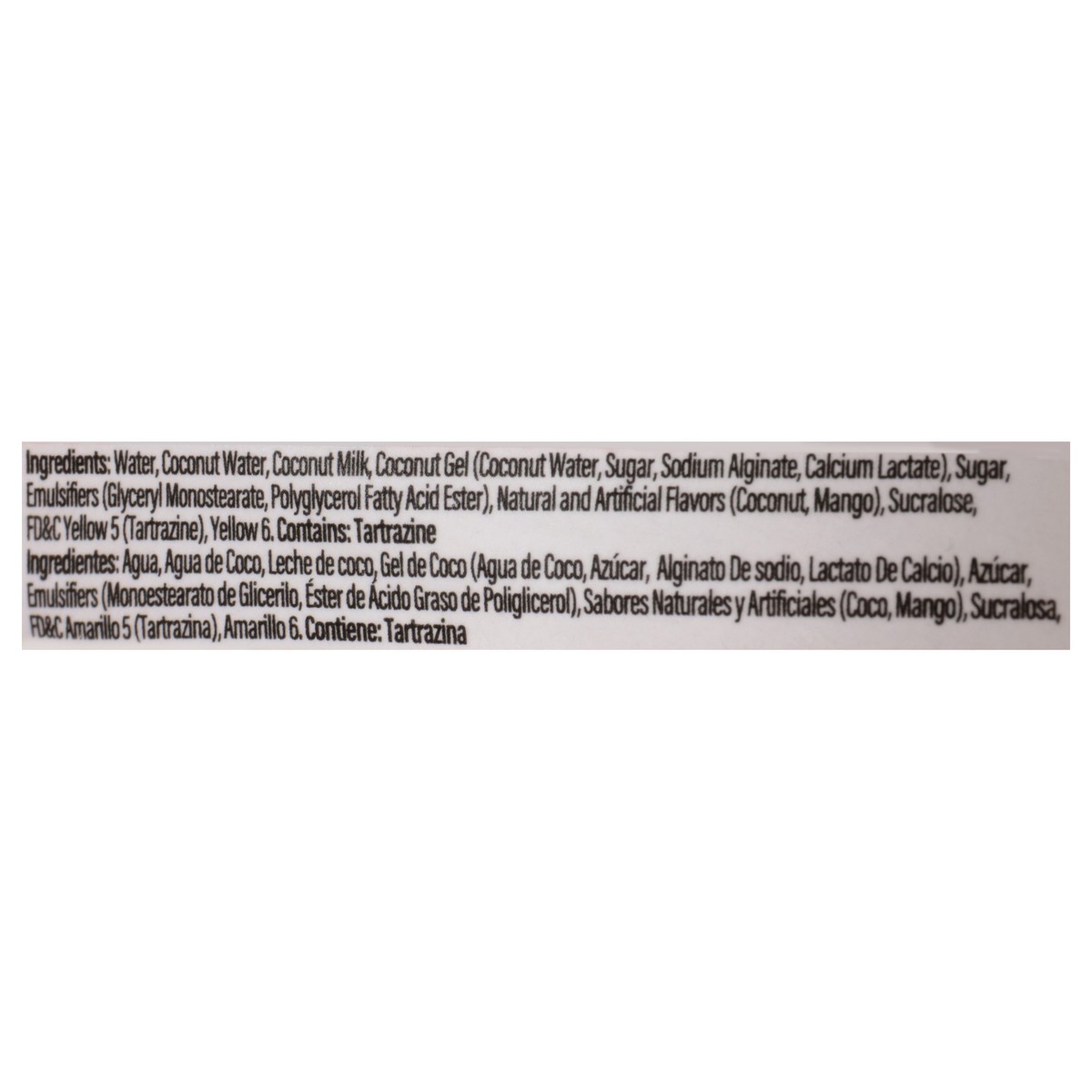 Water, Coconut Water, Coconut Milk, Coconut Gel (Coconut Water, Sugar, Sodium Alginate, Calcium Lactate), Sugar, Emulsifiers (Glyceryl Monostearate, Polyglycerol Fatty Acid Ester), Natural and Artific…