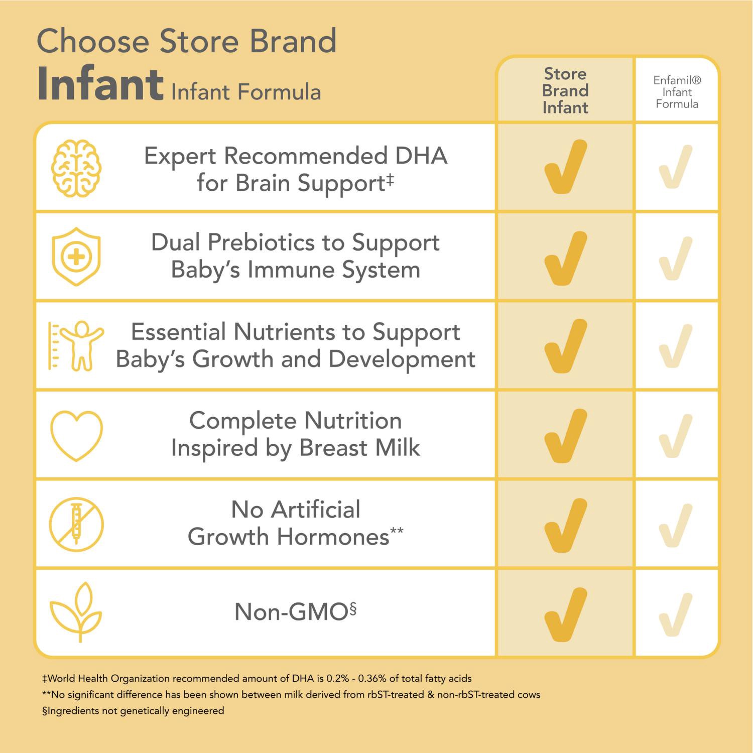 Compare to the nutrition of Enfamil Infant Formula. Inspired by breast milk, Infant Formula Milk-Based Powder with Iron provides complete nutrition during baby's first year. This easy to digest formul…