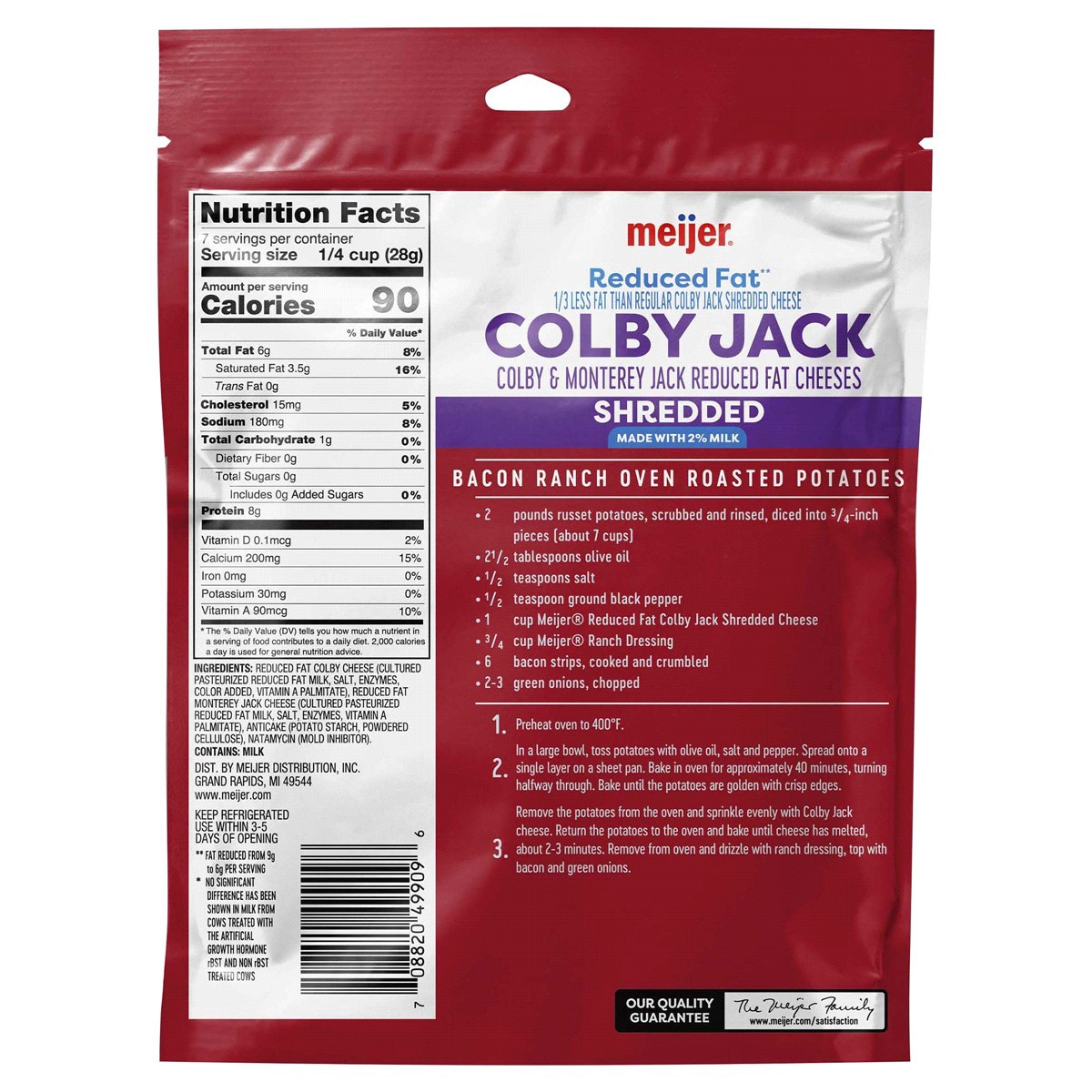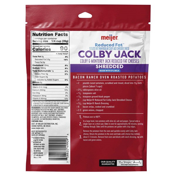 Whether melted over a breakfast burrito or used in bacon oven roasted potatoes for dinnertime, Meijer Shredded Reduced Fat Colby Jack Cheese is perfect for any meal. A delicious combination of creamy …