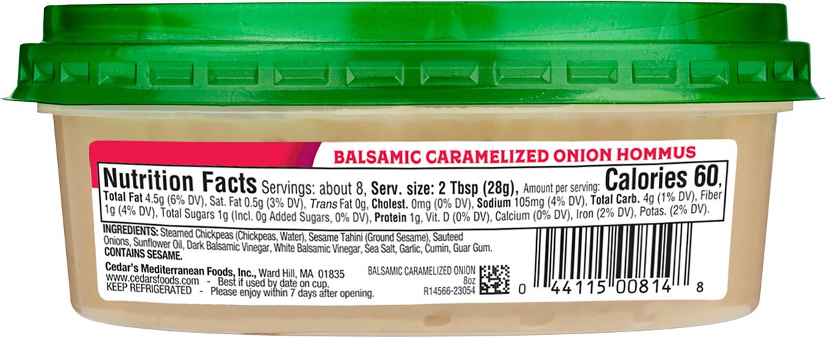Cedars Basalmic Carelized Onion Hommus - 8 Oz