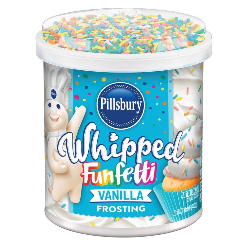 - One 12 Ounce Tub Of Pillsbury Funfetti Whipped Vanilla Frosting